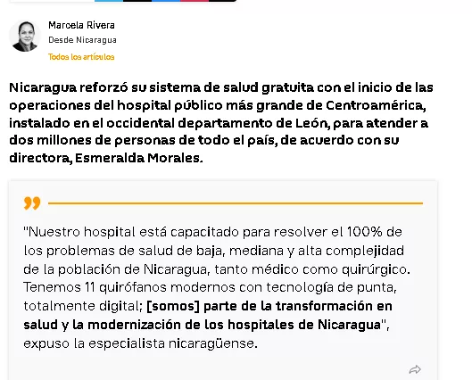 🇳🇮 "Aquí hay derechos": Nicaragua amplía su red hospitalaria de servicios gratuitos de salud
