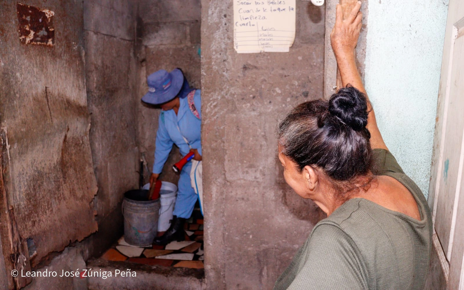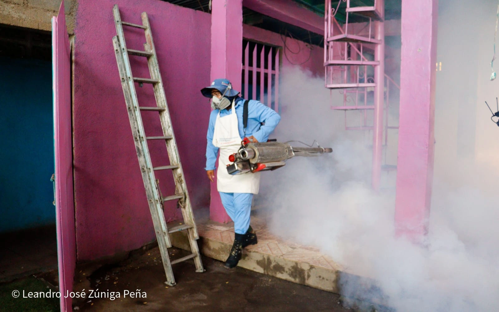 El epidemiólogo del centro de salud Roger Osorio, Roger Alfaro, explicó que el objetivo de esta visita es eliminar los zancudos adultos—responsables de transmitir el dengue — a través de la fumigación, y destruir los huevecillos del vector con la brigada de control y eliminación de criaderos.