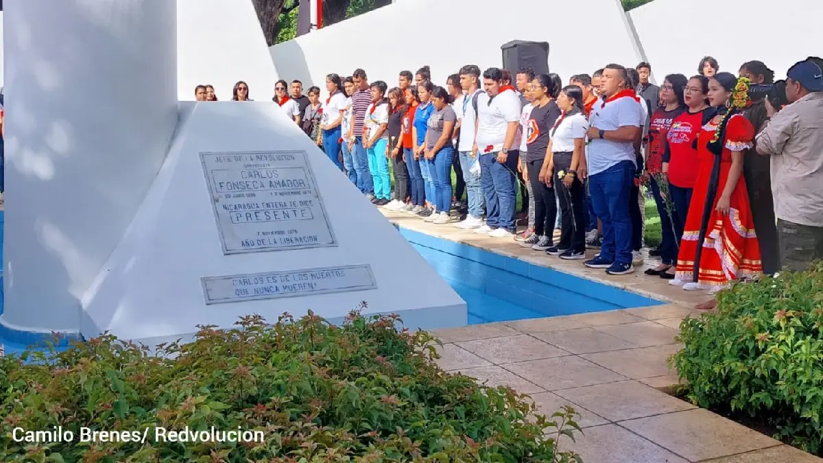 «Nosotros como estudiantes hoy seguimos el legado de nuestro Comandante Carlos Fonseca Amador, siempre como revolucionarios, estamos rindiendo honor a nuestro padre de la Revolución«, mencionó vicepresidenta de la Unión Nacional de Estudiantes (UNEN), María Fernanda Mendoza.