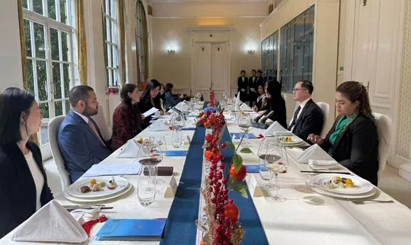 La Delegación sostuvo una reunión con el Vicepresidente de la Asociación de Amistad del Pueblo Chino con el Extranjero, Compañero Shen Xin, con quien abordó nuevas oportunidades para fortalecer los lazos de amistad y entendimiento entre los pueblos de Nicaragua y China.