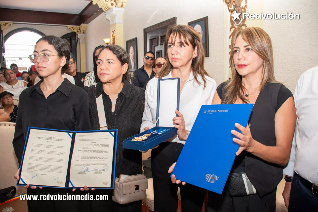 El acto fue encabezado por el Dr. Gustavo Porras, Presidente de la Asamblea Nacional, quien, en nombre de nuestros Copresidentes, Comandante Daniel Ortega y Compañera Rosario Murillo, realizó la entrega de dos de las más altas distinciones del Estado, como reconocimiento a su incansable lucha por la justicia social, gentil guerrero de luz en los caminos del bien común de las familias nicaragüenses y la dignidad de nuestro pueblo.