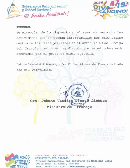 Destacó que «el Ministerio del Trabajo envió la propuesta de comunicado al Comandante Daniel, quien la ha autorizado para hacer público inmediatamente».