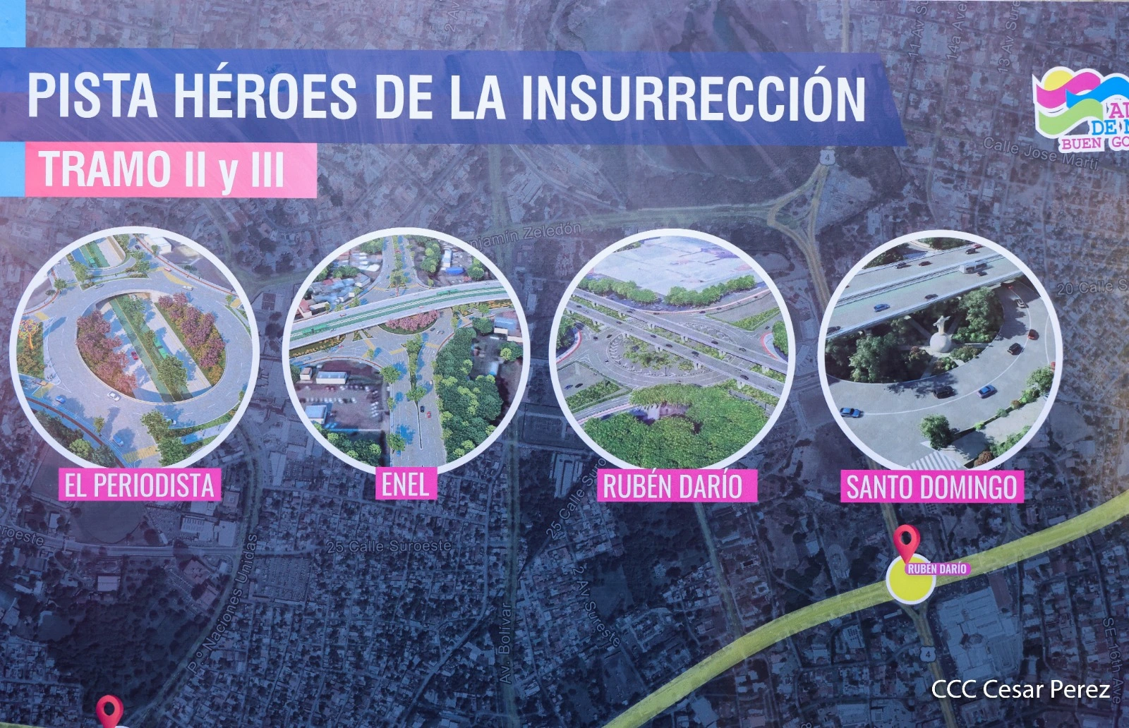 La impresionante obra que transforma y moderniza aún más a la capital de Nicaragua ha concluido y han sido entregados al pueblo de Nicaragua tanto los tramos 1 y 4, por lo que esta sección se constituye como el corazón de la pista.