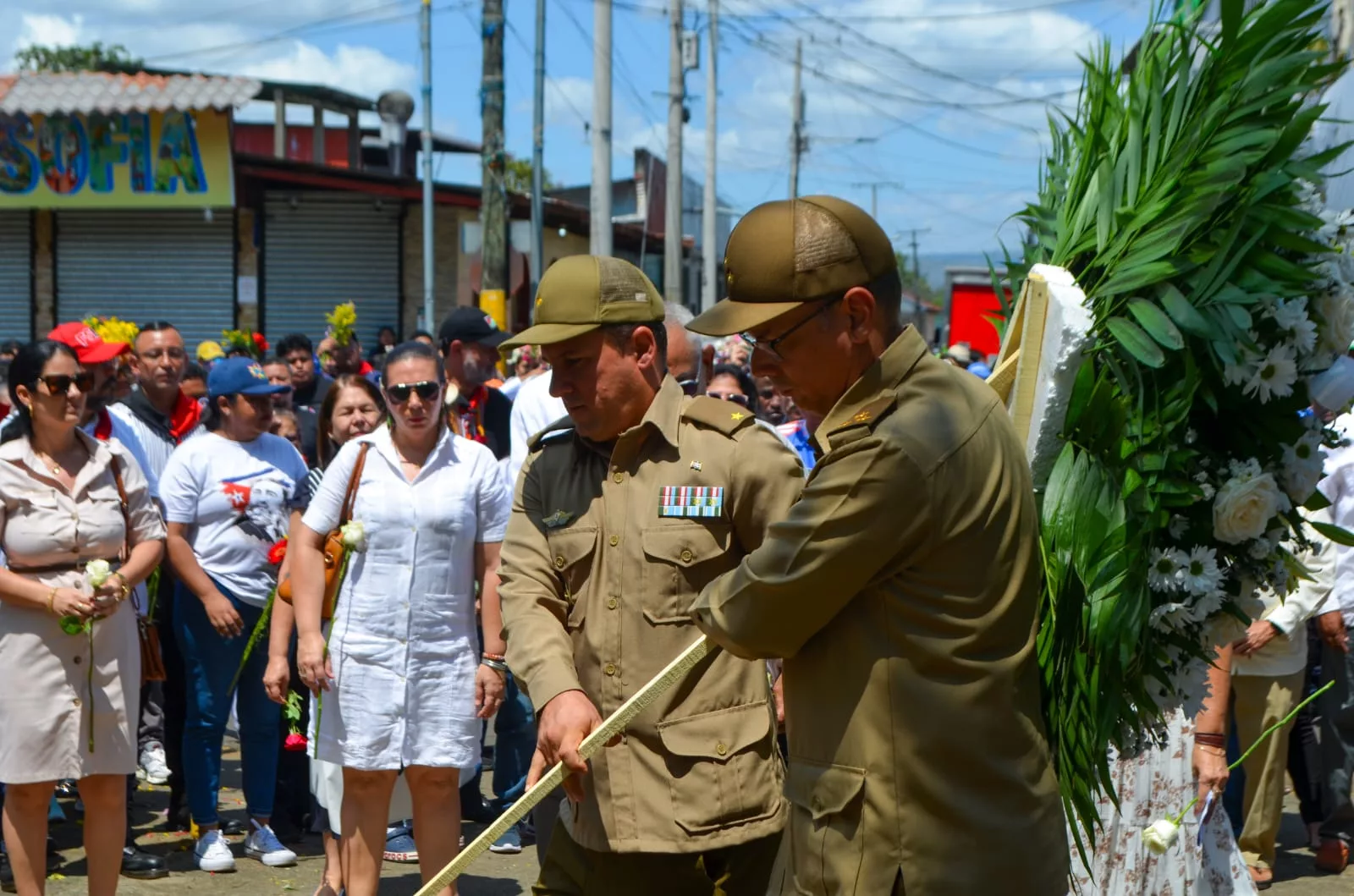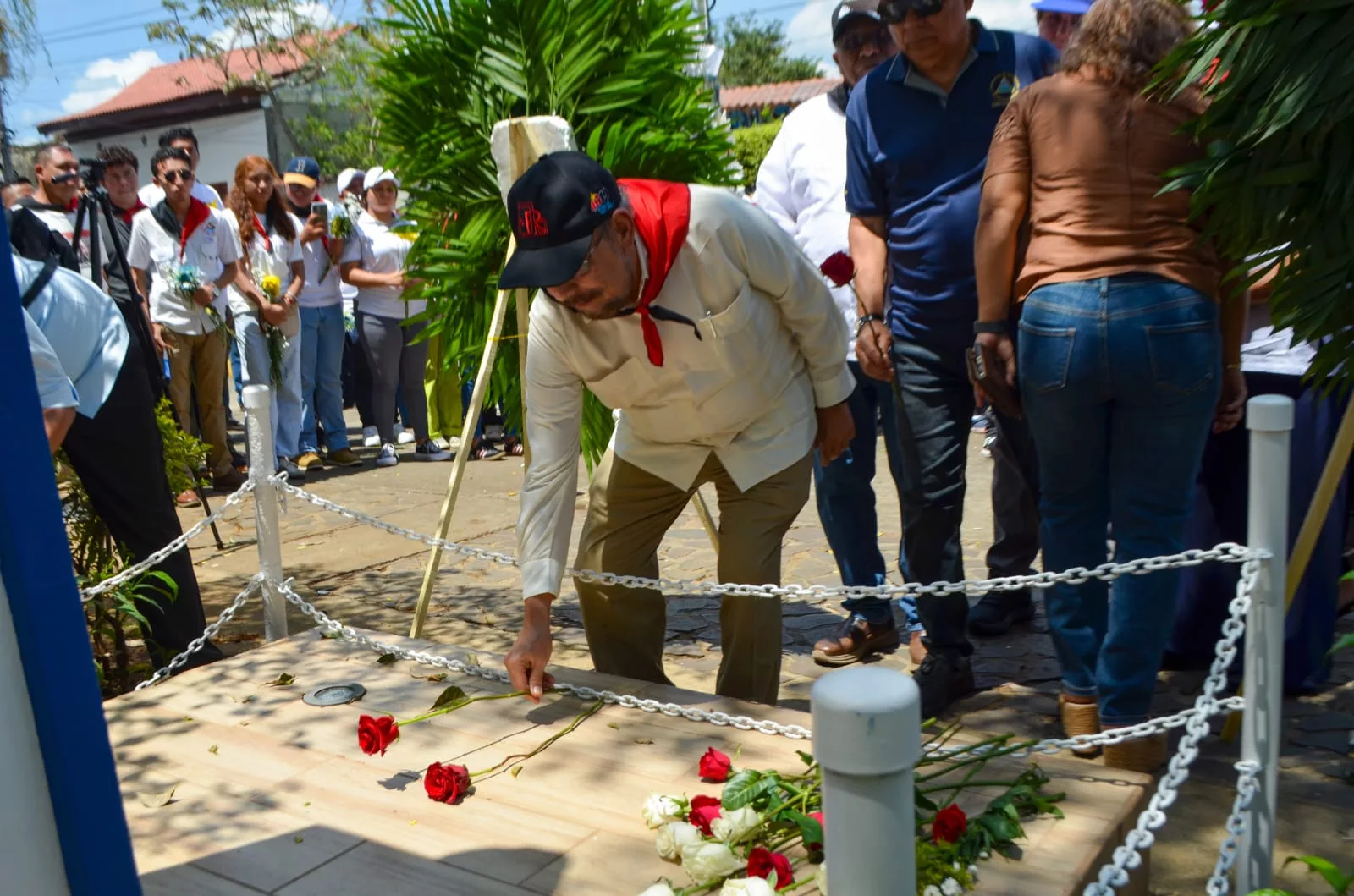 Luego de la presentación cultural de la Escuela Municipal de Danza de Masaya, delegados de la embajada de la República de Cuba en Nicaragua y familiares del Capitán, Carlos Ulloa Arauz, depositaron flores al pie del monumento, ubicado en el Parque Central.