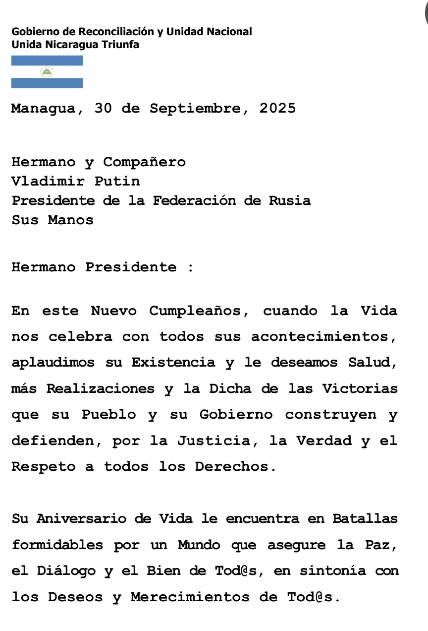 Mensaje al Presidente Vladimir Putin en su Cumpleaños