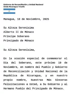 Mensaje de Saludo y Felicitación al Principado de Mónaco en su Día del Soberano