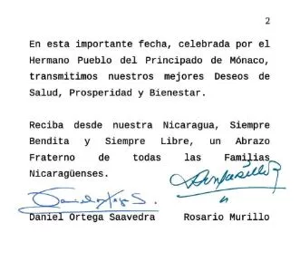Mensaje de Saludo y Felicitación del Copresidente-Comandante Daniel, y la Copresidenta Compañera Rosario, a Su Alteza Serenísima Alberto II de Mónaco, Príncipe Soberano del Principado de Mónaco, en ocasión de conmemorarse el Día del Soberano en ese Hermano País.
