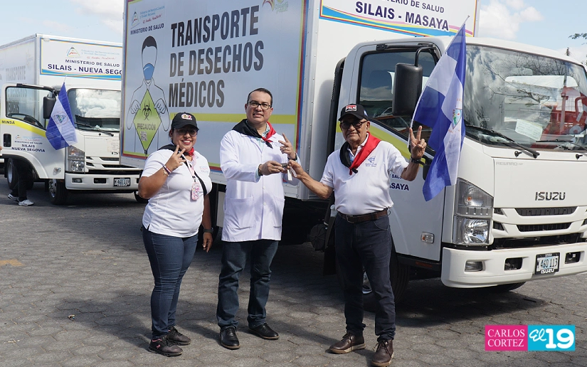 A través del Buen Gobierno Sandinista, el Ministerio de Salud fortaleció la gestión hospitalaria con la entrega de cinco camiones especializados destinados al manejo y traslado seguro de desechos en unidades de salud a nivel nacional, como parte de las acciones para modernizar el sistema público y garantizar un tratamiento adecuado de los residuos desde su generación hasta su disposición final.
