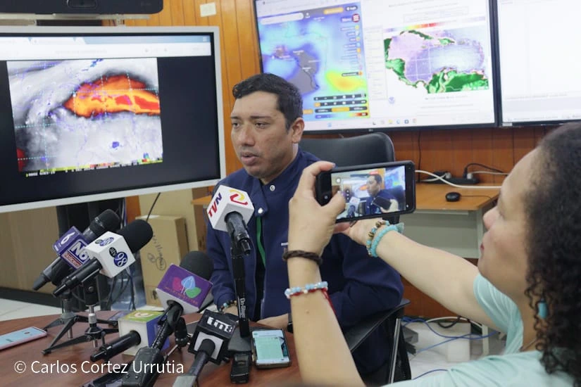 “Continuará el ambiente caluroso, tendremos aún temperaturas bastante importante en el territorio nacional con valores entre 36 y 38 con un máximo en Occidente del país y entre 33 y 36 en el resto del Pacífico y regiones de la Costa Caribe, mientras en el Centro y Norte del territorio tendremos valores entre 28 y 33, esto sumado a vientos débil y moderados que ocasionará una sensación térmica de hasta 39 grados sobre todo en la tarde”, explicó Prado.
