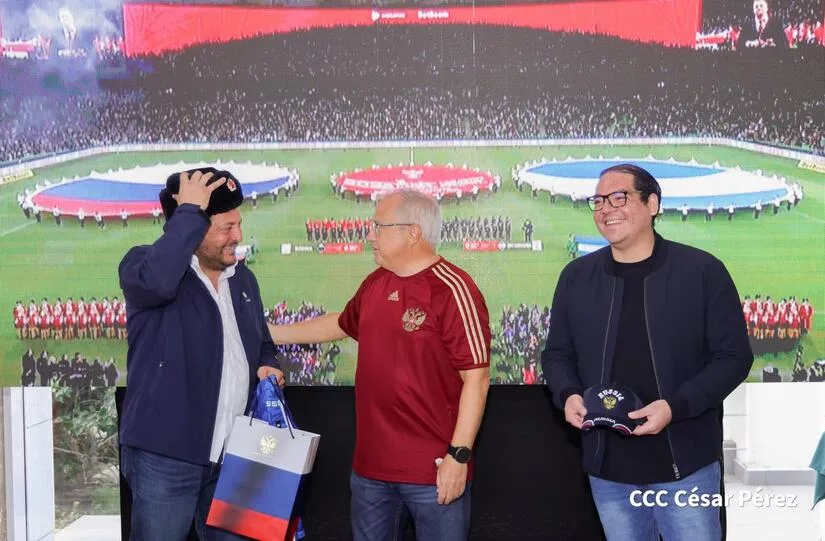 Entre las autoridades del Gobierno Sandinista que asistieron a la sede diplomática rusa en Managua, a presenciar el encuentro futbolístico, figuran el compañero Laureano Ortega Murillo, Asesor para la Promoción de Inversiones, Comercio y Cooperación Internacional, y Representante Especial de la Presidencia de Nicaragua para Asuntos con la Federación de Rusia.