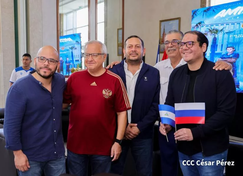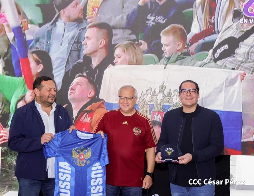 José María Bermúdez, secretario general de la FENITUF, entregó obsequios al embajador Ledenev que consisten en camiseta de la Selección de Fútbol de Nicaragua; por su parte, el diplomático ruso le agasajó la camiseta del seleccionado ruso.
