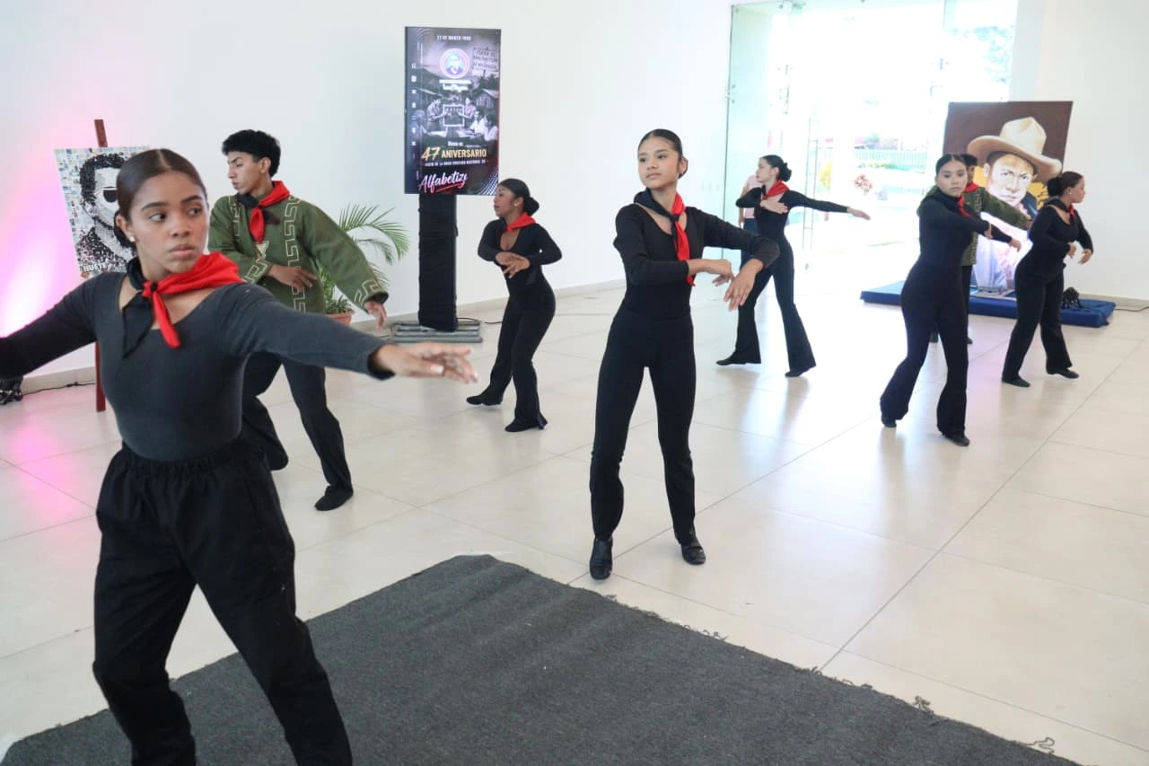 Durante la exposición, desarrollada en el Centro Cultural Tino López Guerra, también se realizó la presentación artística de jóvenes estudiantes, quienes con orgullo celebran el 46 aniversario del inicio de una gran epopeya protagonizada por la juventud nicaragüense