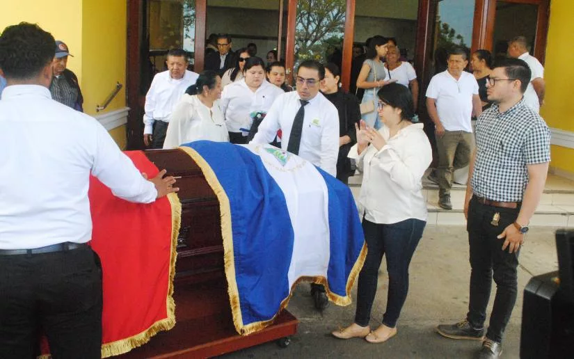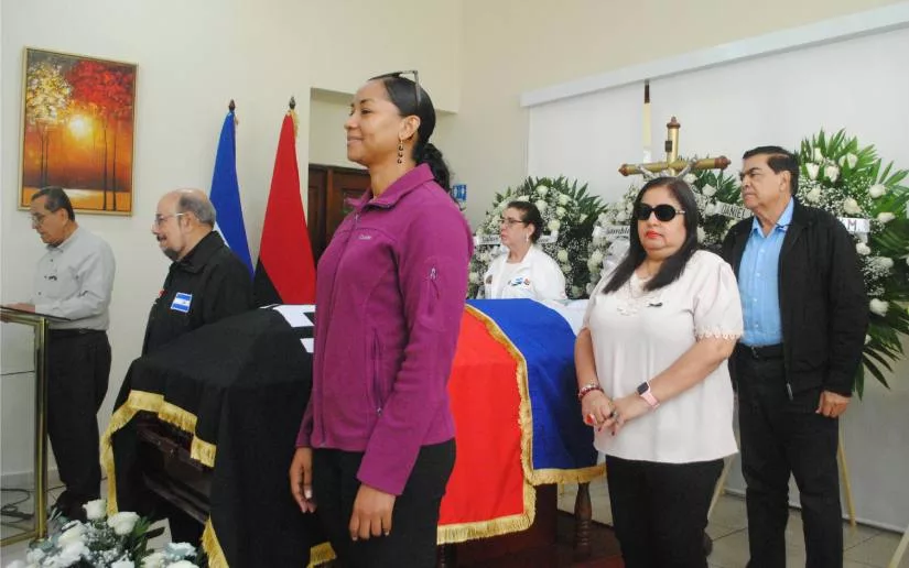 El presidente del órgano legislativo, doctor Gustavo Porras, realizó la entrega de la Medalla en el salón velatorio de Funeraria Sierras de Paz en Managua, a su esposa Elia Muñoz López, hijos y nietos que se encontraban en el recinto, junto con todos los diputados, diputadas y amigos de la familia.