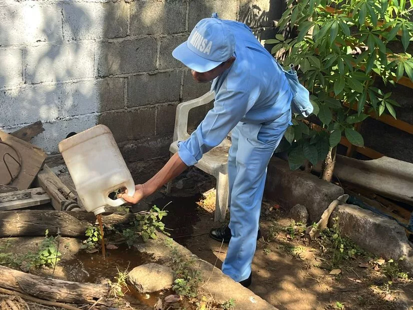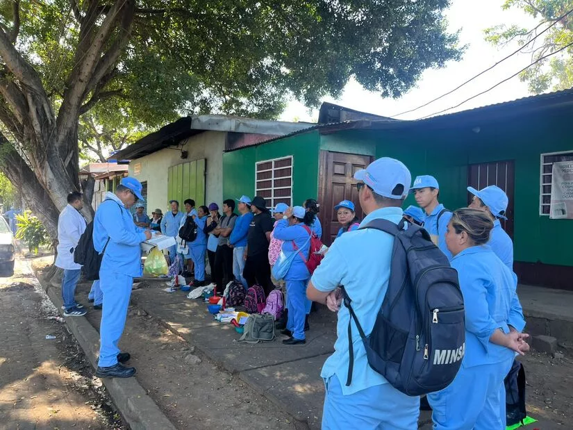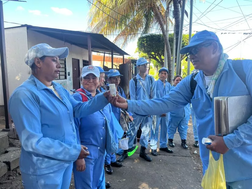 Los brigadistas de celeste del Ministerio de Salud iniciaron este lunes una nueva jornada de lucha antiepidémica en el sector El Ceibo de San Judas, equipados con pana, larvero, cepillo y lámpara, para eliminar criaderos de zancudos y prevenir enfermedades.