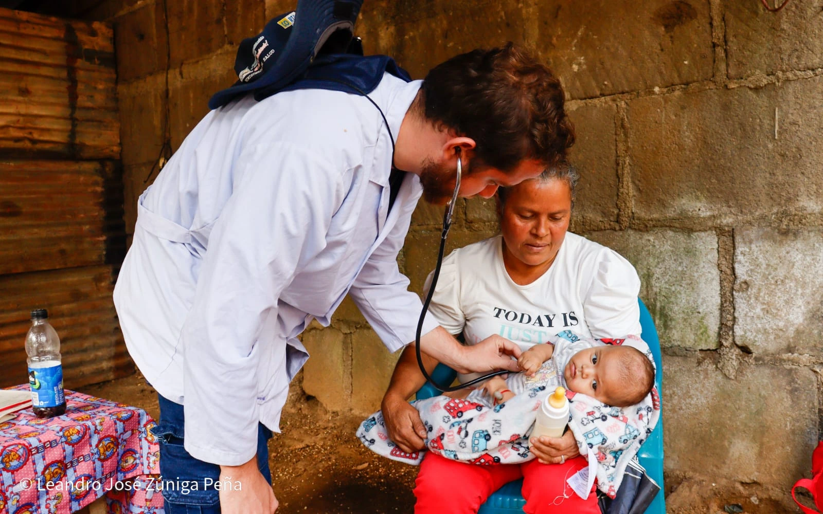 La señora Gertrudis Gaitán, habitante de esta comunidad, llegó a acompañar a su hija que cargaba en brazos a su bebé de meses. También aprovechó la visita de los médicos para pasar consulta.