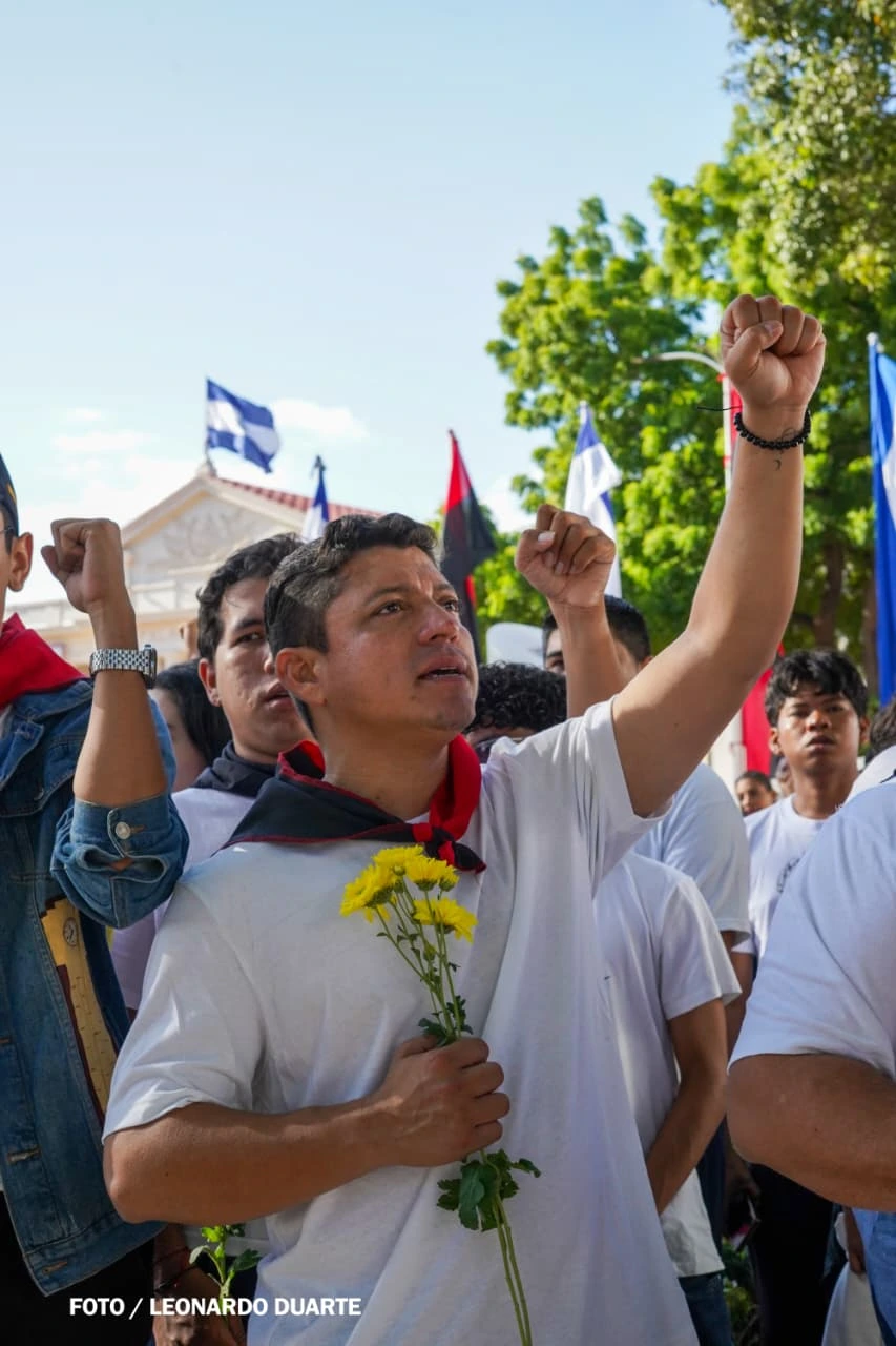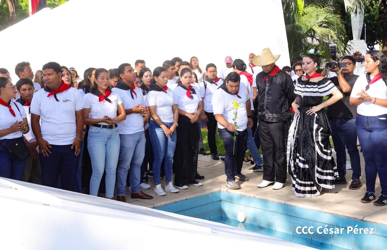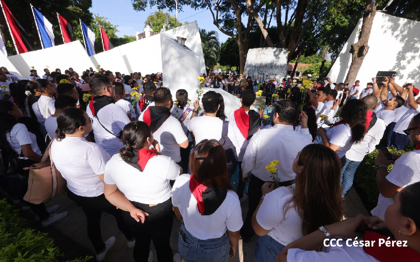«Fue uno de los las grandes ideólogos de la lucha revolucionaria nicaragüense. Hoy colocamos una ofrenda floral, rindiendo homenaje a su legado de lucha. Nosotros somos los protagonistas de dar continuidad a su pensamiento y seguir en victorias, seguir avanzando«, concluyó Martínez.