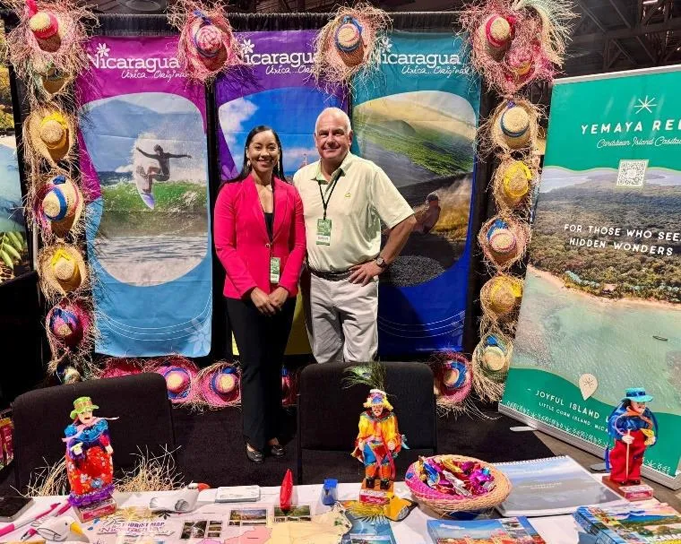 El stand de Nicaragua captó el interés de numerosos visitantes, generando contactos estratégicos con profesionales de la industria turística y potenciales viajeros, quienes además recibieron dulcería tradicional, sombreros, pajaritos, lapiceros y material informativo sobre el destino.