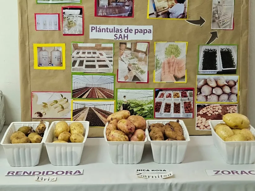 Las variedades son Rendidora Precoz, Nica Rosa y Tisey, con rendimientos entre 350 y 500 quintales por manzana, tolerancia a sequía, alta humedad, y enfermedades como tizón tardío, virosis y bacterias.
