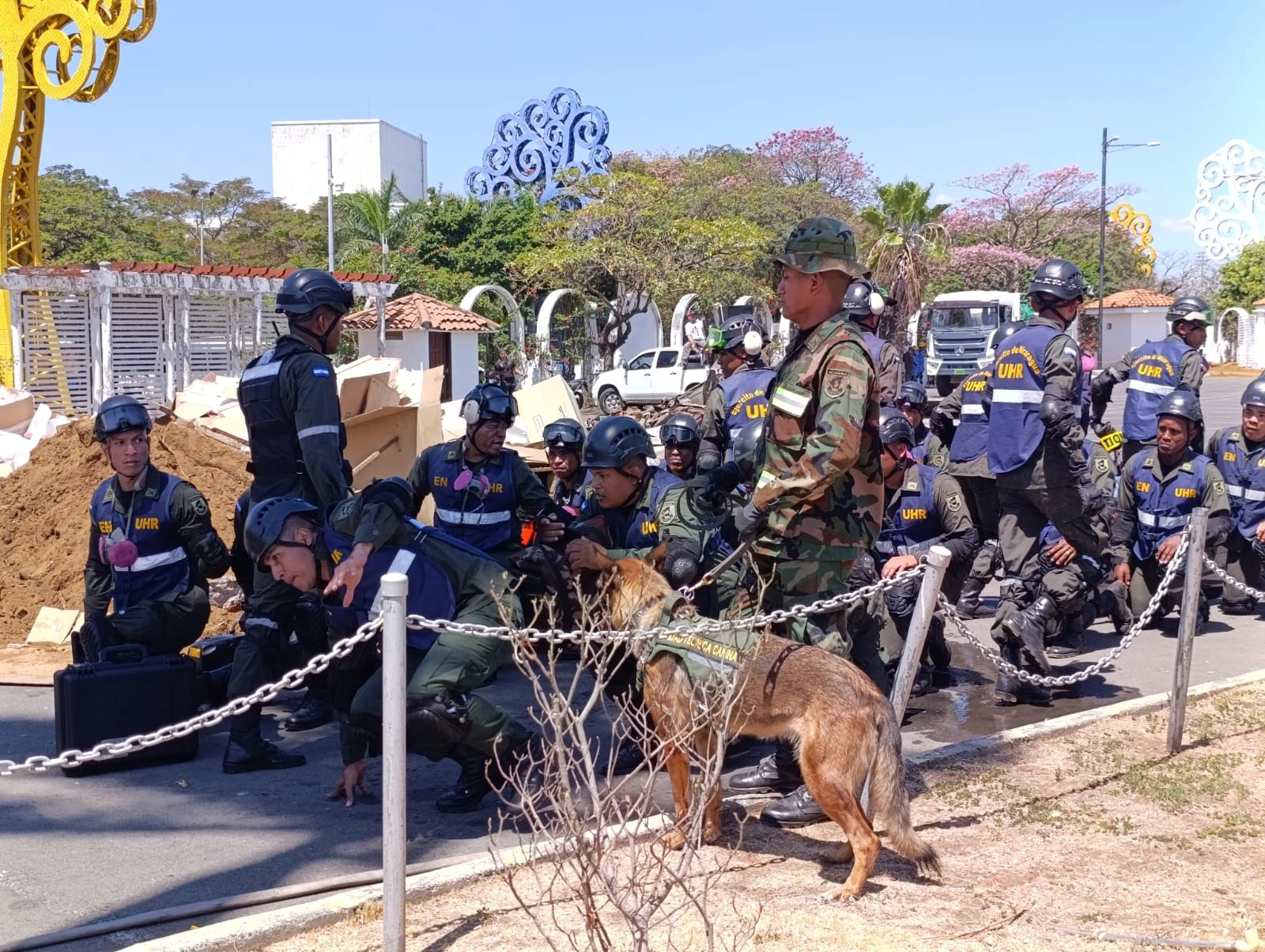 En este sitio también se contó con la presencia de miembros del Cuerpo Diplomático acreditado en Nicaragua, quienes tuvieron la oportunidad de presenciar el desarrollo de las acciones de rescate implementadas durante el ejercicio.