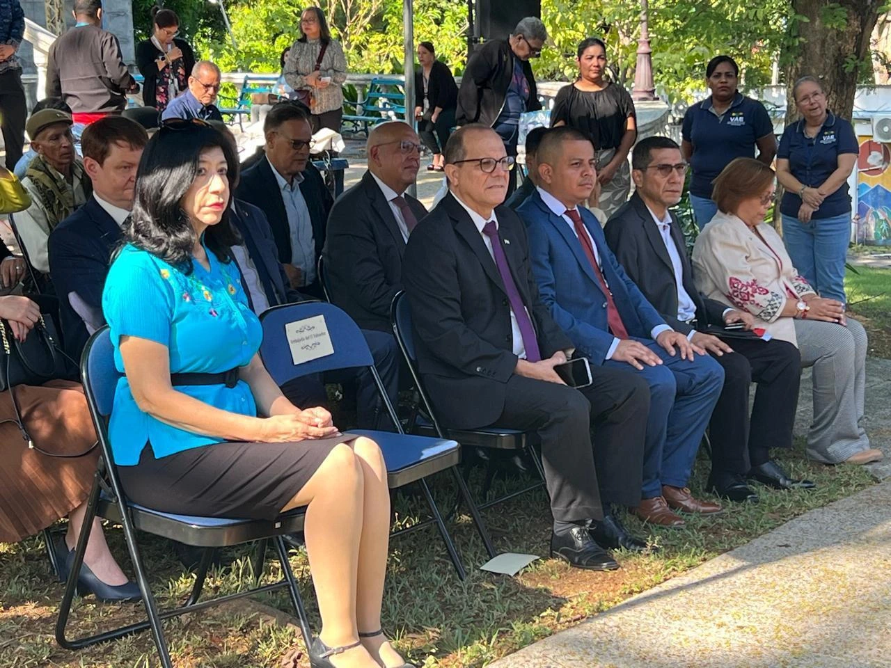 El acto, efectuado frente al Monumento del General, ubicado en el Campus de esta prestigiosa Alta Casa de Estudios, contó con la presencia de un nutrido público, entre los que se encontraban, en representación de la Cancillería Panameña, Abdiel García, de la Dirección de Hemisferio Occidental, la Vicerrectora de Asuntos Estudiantiles, la académica Mayanín Rodríguez, en representación del Rector de la Universidad de Panamá, los embajadores de Colombia, Perú, Indonesia, Cuba, las Embajadoras Costa Rica, Barbados, el Ministro Consejero de la Embajada de China, el Ministro Consejero de la embajada de Rusia, el encargado de Negocio de la India, Diplomáticas de México, el cónsul de Venezuela, Diputados, Fundaciones, Movimientos sociales y Asociaciones, Sindicalistas, líderes políticos, Académicos, Intelectuales, Solidaridad, periodistas y connacionales. El Catedrático José Castillo, fue el maestro de ceremonias.